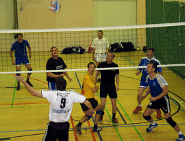 Lujan miesjoukkue seuraa vastustaja Porvoon hyökkäystä Viking Line cupin omassa osakisassa 12.11.05