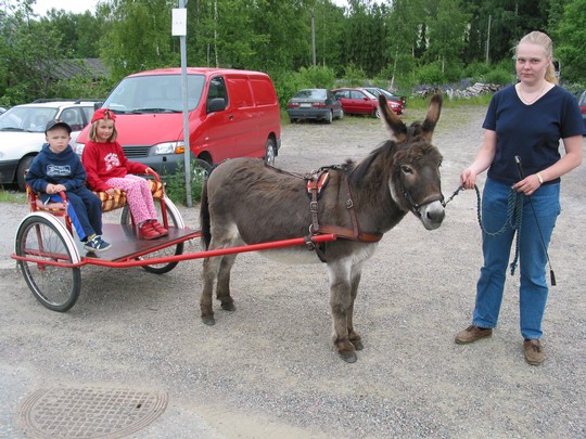 Toinen lasten suosikki oli ajelu Hector-aasin kyydissä